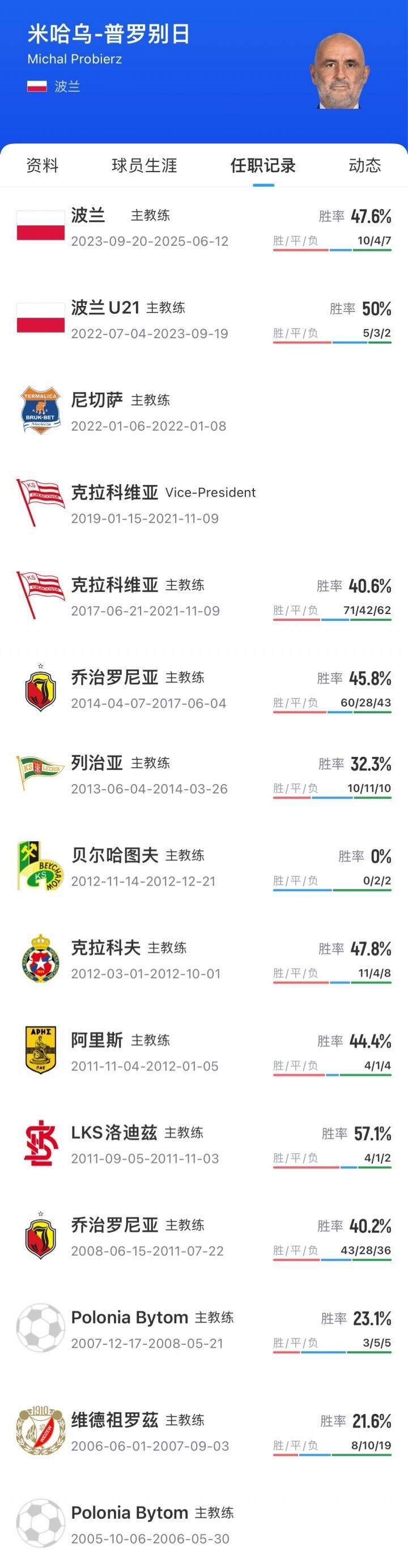 10月21日获悉,作为国足新帅主要候选人之一,现年53岁的前波兰队主教练米哈乌·普罗别日与哈萨克斯坦足协就执教哈萨克斯坦队一事已经展开深入洽谈,双方谈判内容已涉及到具体合作细节,这意味着普罗别日已无缘接手国足。