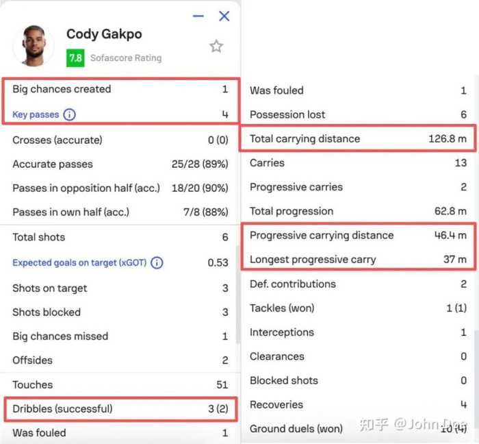 加克波在英超,印象没记错的话,最高的单次持球推进距离是21米(对阵富勒姆丢的那个单刀),常规状态下的单次持球推进距离在10米左右。